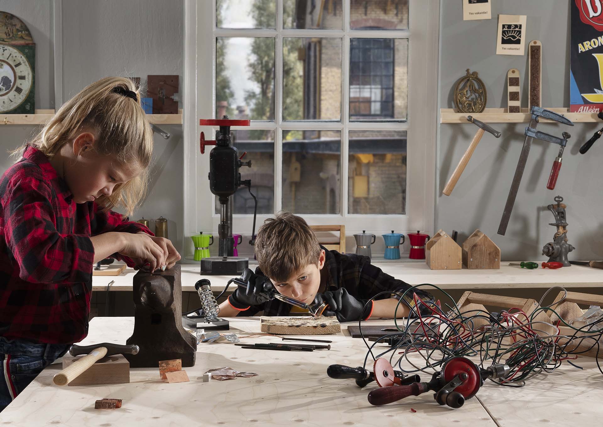 De leerlingen gaan hiermee aan de slag. In de Maakfabriek gaan ze hun eigen wijzers maken, hun eigen verhaal afbeelden op een wijzerplaat van hout en hier een eigenwijze klok van maken. Ook ontdekken ze van alles over de eigenwijze verhalen achter de klokken, machines en uitvindingen in het museum!